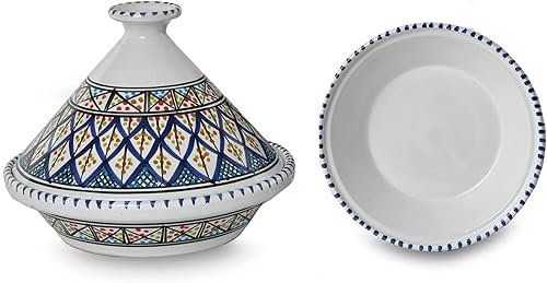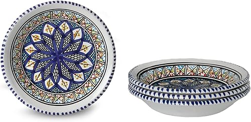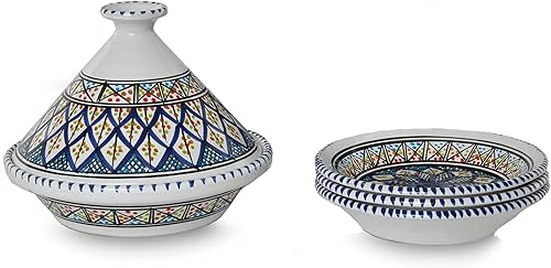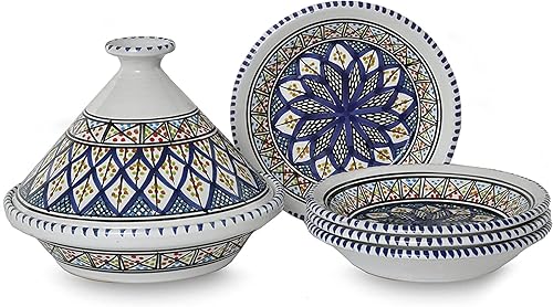 Ensemble Plat à Tajine et Assiettes Creuses, 5 pièces. Pour servir repas ou exposer comme objet décoratif - Artisanale