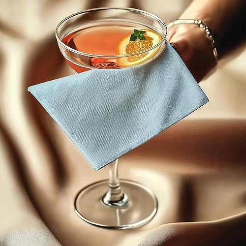 Encasa XO Set de 12 Serviettes de Table en Tissu Cocktail | Serviette de Table en Coton Pur | 23x23 cm | Glace Bleue | Lavable en Machine