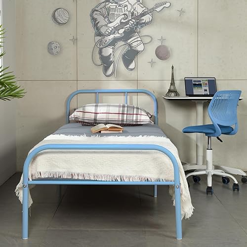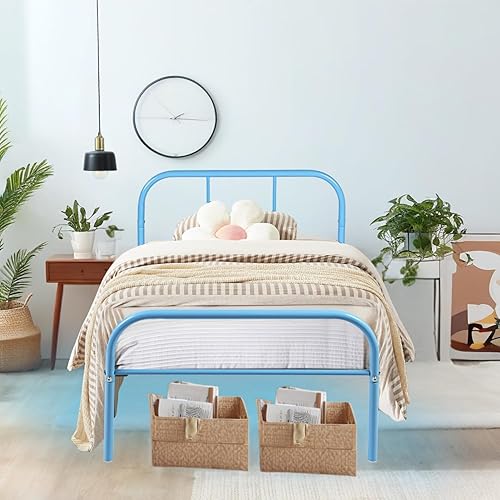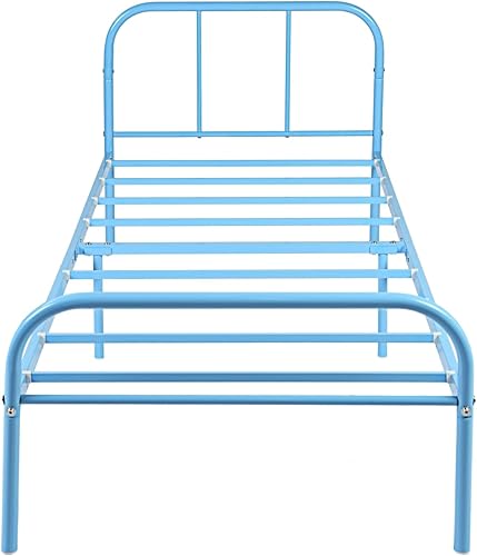 FurnitureR Lit Simple en métal avec lumière LED - Cadre de lit Simple - Cadre de lit Simple Moderne - avec sommier à Lattes - pour Chambre à Coucher, Chambre d'amis, 90 x 190 cm - Bleu