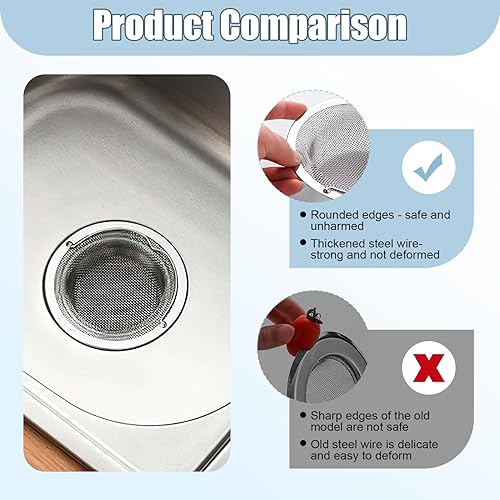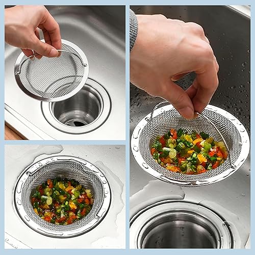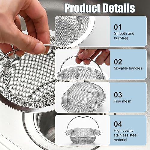 Lot de 2 tamis d'évier de cuisine en acier inoxydable avec poignée, passoire d'évier à mailles fines, tamis de cuisine pour évier de cuisine contre l'obstruction et pour filtrer les résidus