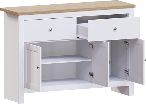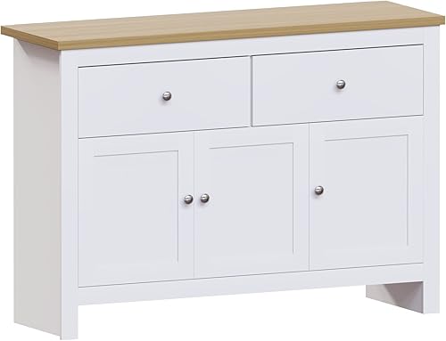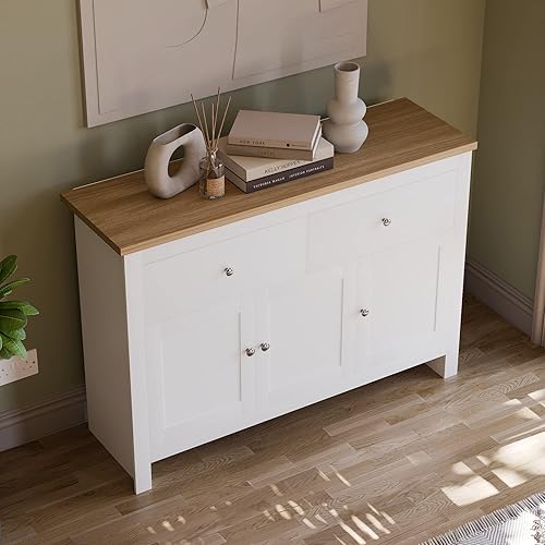 Vida Designs Arlington Buffet 2 tiroirs 3 Portes en Bois d'ingénierie, Blanc et chêne, H 82 x l 117 x P 35 cm