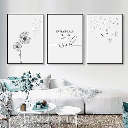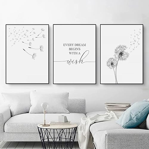 EXQULEG Lot de 3 posters muraux modernes, noir et blanc, motif de pissenlit, motif fleurs abstraites, pour la décoration du salon, sans cadre (30 x 40 cm)