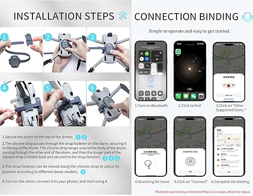 LICHIFIT Anti-Lost Drone Alarm Buzzer Universal Convient pour DJI AVATA 2 / Mavic 3 Pro/AIR 3 / Mini 4 Pro Drones GPS Tracker avec sirène 120dB et Lampe de Poche LED Rechargeable