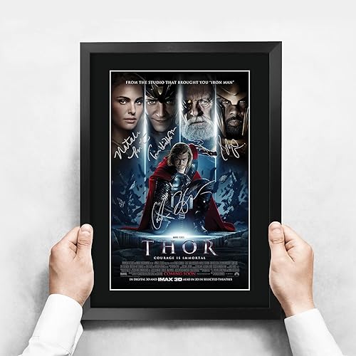 HWC Trading FR A3 Thor Chris Hemsworth Cadeaux imprimés affiche photo autographe signée pour les fans de cinéma - A3 Encadré