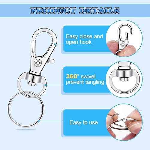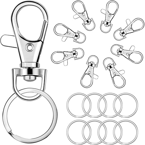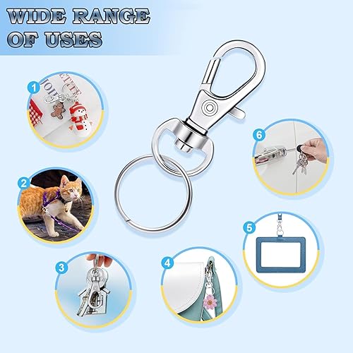Ensemble de 50 pièces de Clips pour Porte-Clés, Crochets Lanière Porte-Clés, Porte-Clés, Porte-Clés Mousqueton, Boutons-Pression pour lanière pivotante, pour La Fabrication de Bijoux, Lanières, Clés