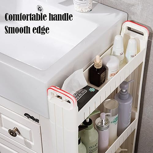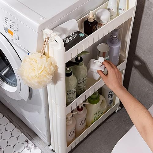 Chariot De Rangement Mince 3/5 Niveaux, Chariot À Roulettes, Organisateur D'étagères De Rangement Mobile Pour Bureau De Buanderie De Salle De Bain De Cuisine, Plastique, Blanc, Largeur 10cm,3 Niveaux