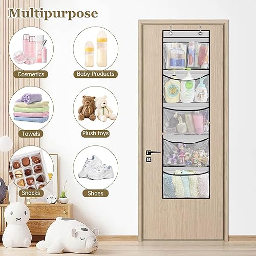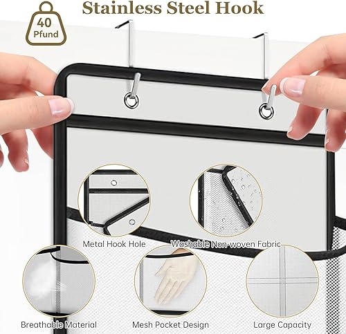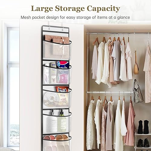 Étagère Suspendue, Rangement Suspendu Lot de 2 Étagère à Suspendre Rangement à Suspendre Portess Organiseur de Rangement avec 5 Poches en Filet pour Chambre à Coucher Placard Salle de Bain
