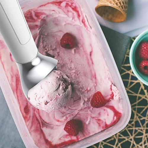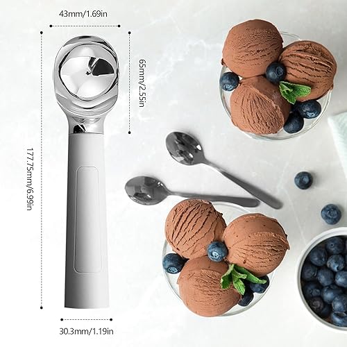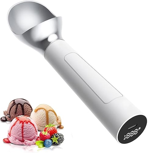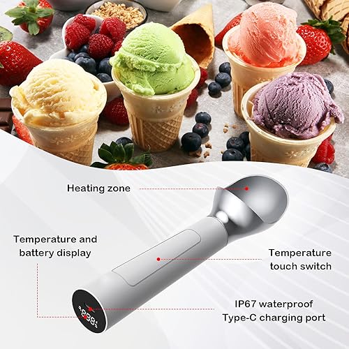 Cuillère à Glace Electrique Chauffée, Cuillere Glace en Acier Inoxydable Rechargeable avec affichage LED,2 Oz par Cuillère, IP67 étanche Cuillere a Glace pour Glaces, pâte à Biscuits, Sorbet, Amande