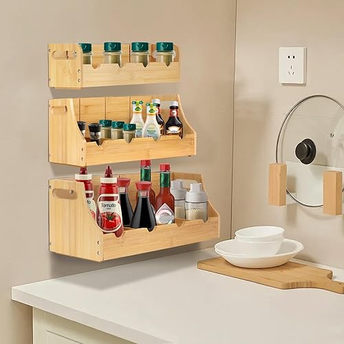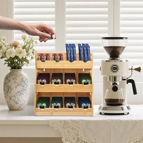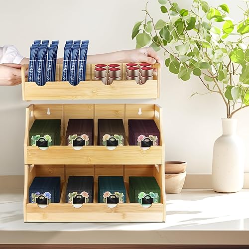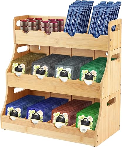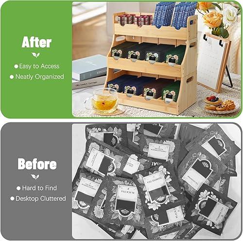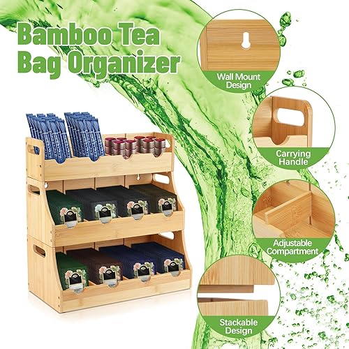 Boite A The en Bambou Verticale SHAIDOJIO, Boite À Thé Empilable à 3 Niveaux, Organisateur de Mural Sachets de Thé avec 12 Compartiments Amovibles pour Le Rangement des Sachets de Thé Café Sucre
