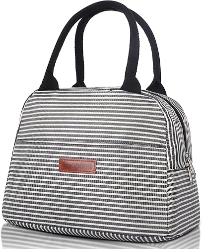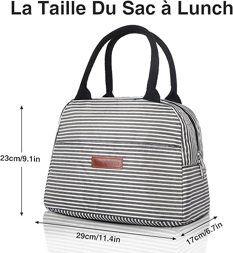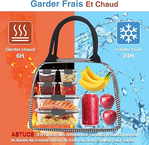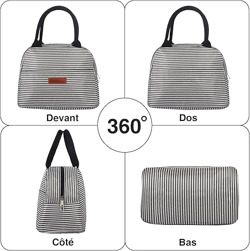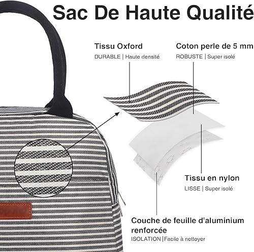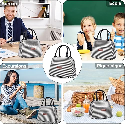 Figarge Sac Isotherme à Repas Portable Lunch Bag Sac à Dos Déjeuner Waterproof avec Feuille d'Aluminium Isolée, Sac à Main Pliable pour Femme, Homme, Enfant au Bureau et à l’École (Noir et Blanc)