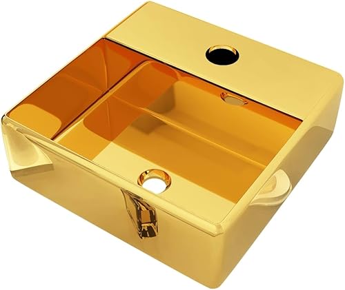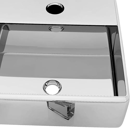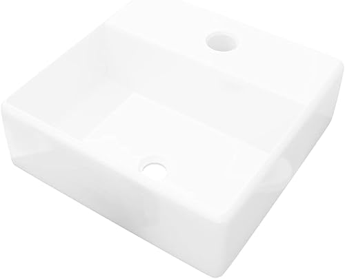 vidaXL Lavabo Carré à Trou Robinet Céramique Blanc Toilette Lave-mains Vasque