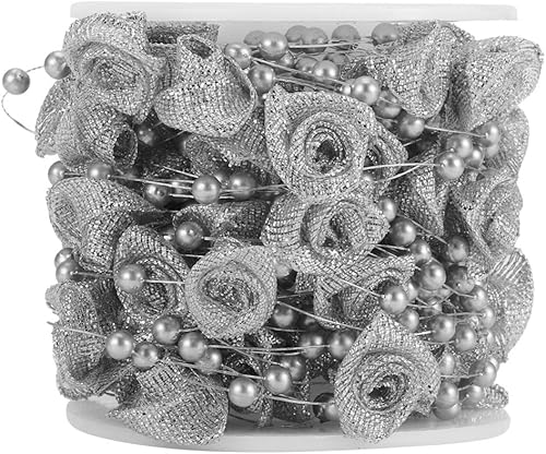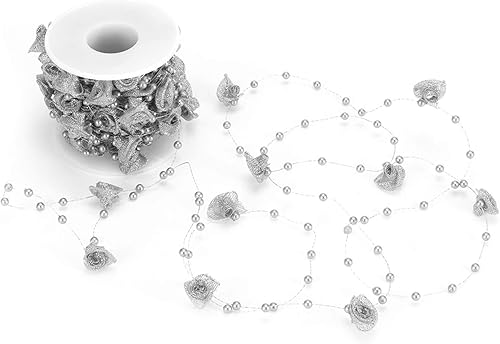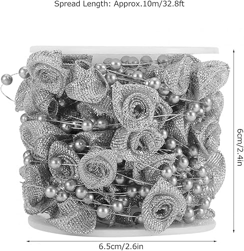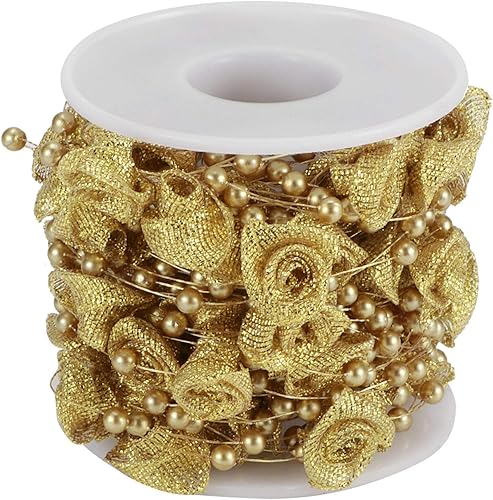 HERCHR 10 m Ruban Garniture Corde Perles Perles chaînes Ruban Rose Fleur Fil perlé pour Guirlande Bricolage Artisanat et fête Mariage décorations pour la Maison(Or)