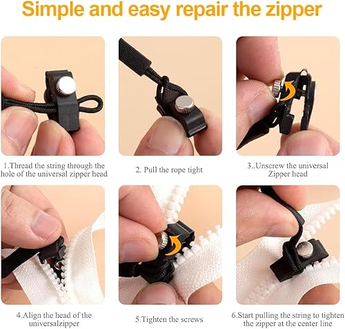 SGERUFZ 12 Pièces Kit Universel de Réparation de Fermeture Éclair, Zip de Remplacement Amovible, Kit de Réparation pour Veste/Manteau/Sac à Dos