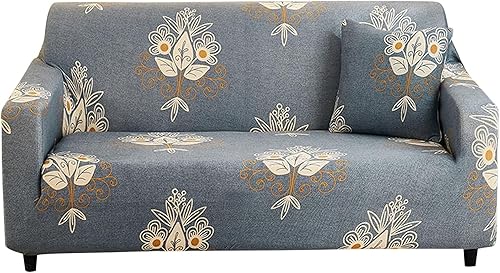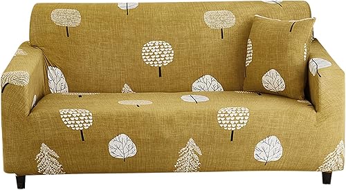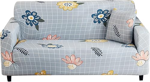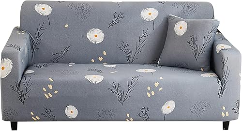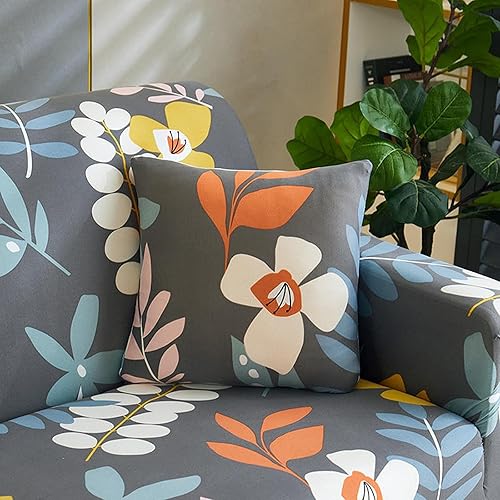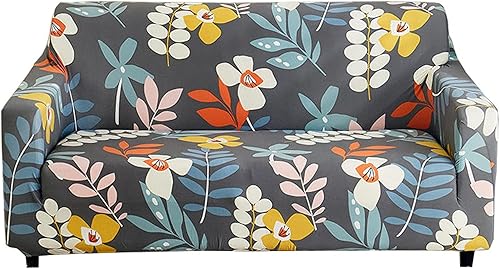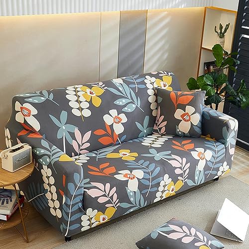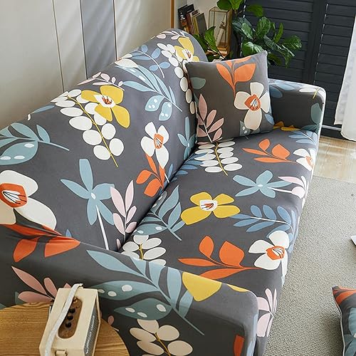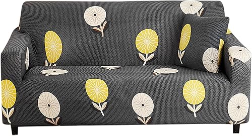 Daesar Housses Canape Extensible, Housse Canapé 2 Places Fleurs de Kiwi Housse pour Canape Lit Gris Jaune (Polyester, 2 Places)