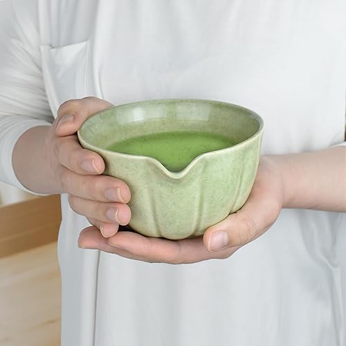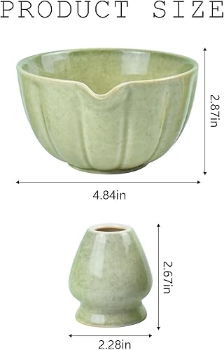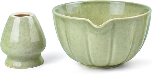 Artcome Bol à matcha avec bec verseur et porte-fouet - Bol à matcha en céramique de qualité supérieure avec bec verseur pratique et support en bambou pour cérémonie traditionnelle du thé japonais