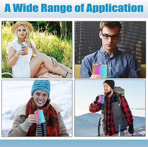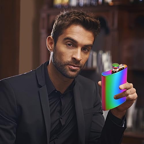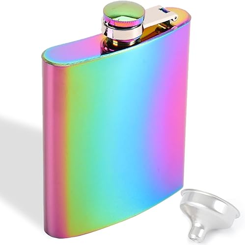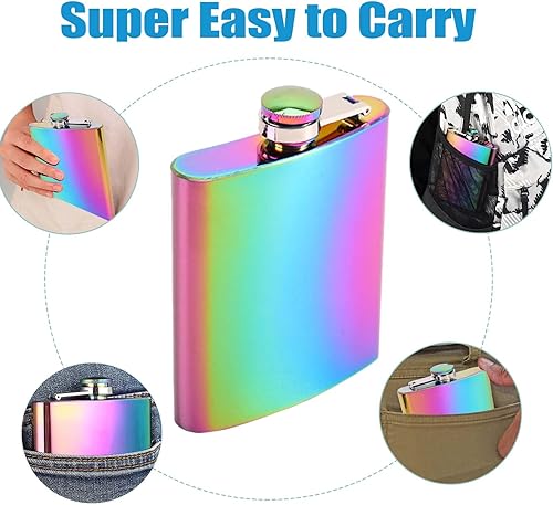 Flasque de poche de 236,8 g pour homme et femme - Arc-en-ciel - Avec entonnoir - Portable - Étanche - Pour homme et femme - Bouteille de vin en plein air, fête de mariage, bar, fête, escalade, camping