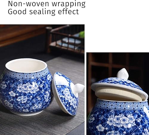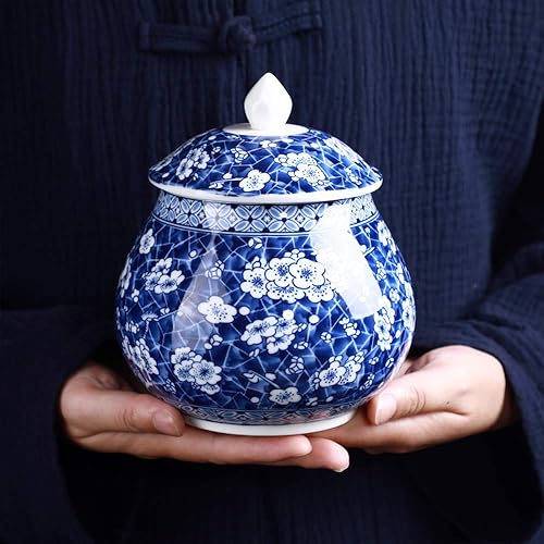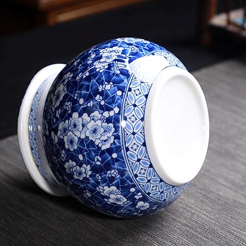 wongwongcat Boîte de conservation 900 ml - Style chinois - Porcelaine bleue et blanche - Céramique - Avec couvercle - Décoration pour la maison, la cuisine, la salle à manger (bleu et blanc)