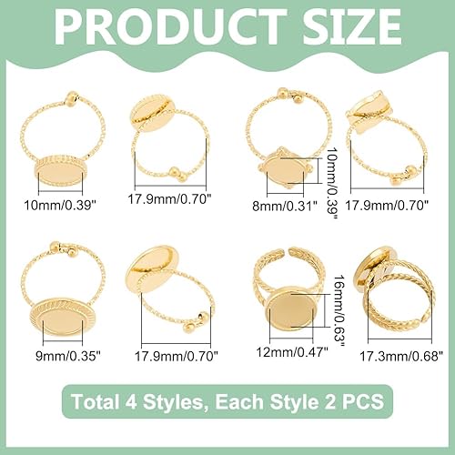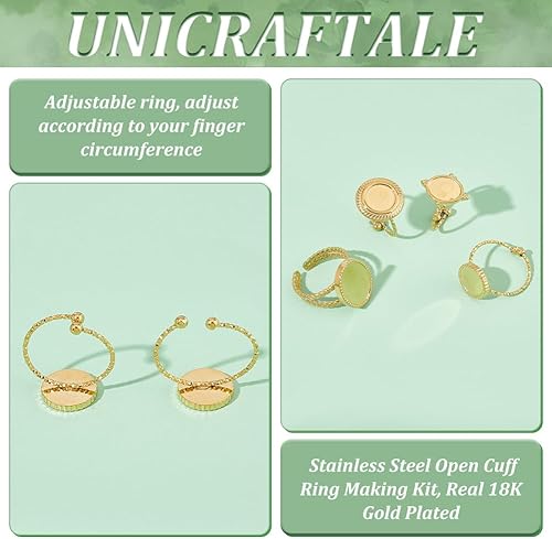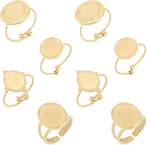UNICRAFTALE 8 pièces 4 styles Bague Ouverte Ronde Ovale 304 Acier Inoxydable Motif Sculpté Lunette Bague Ouverte pour la Fabrication de Bijoux Or 18 carats