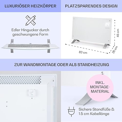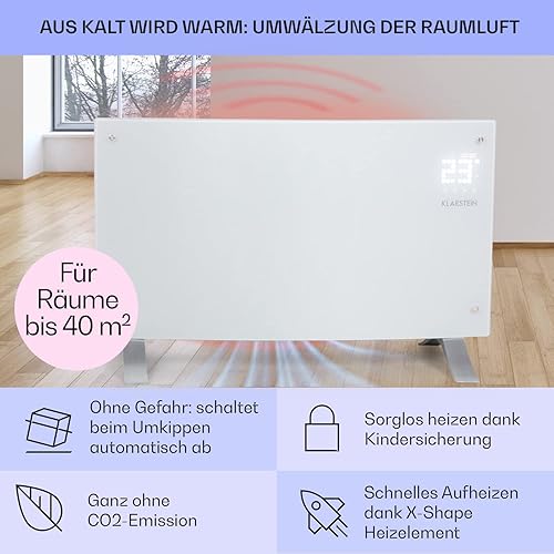KLARSTEIN Bornholm - Radiateur électrique,Chauffage à convection, 2000 W,Idéal pour les pièces jusqu'à 40 m², 5°- 45°C,Timer,Écran LCD, 2 niveaux de chauffage,Norme IP24,Mode ECO - blanc