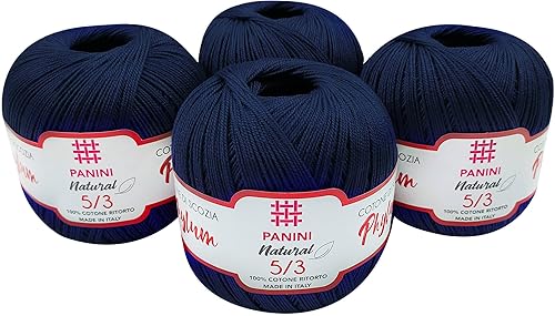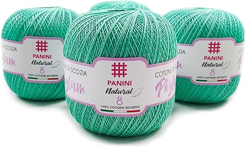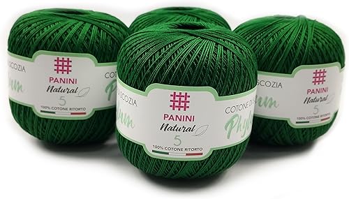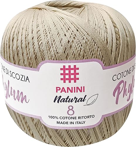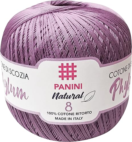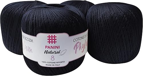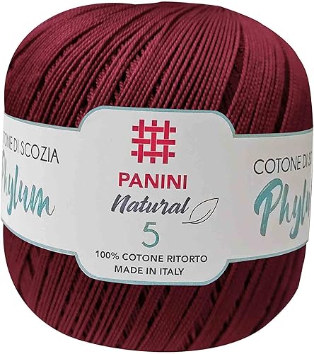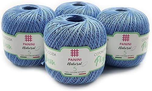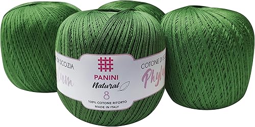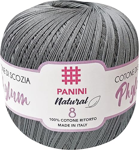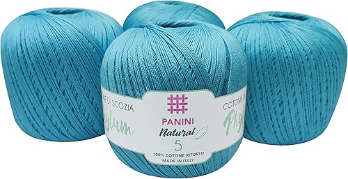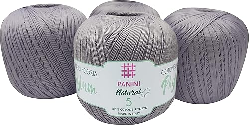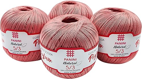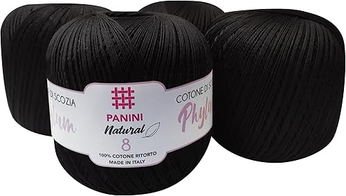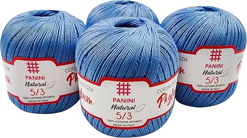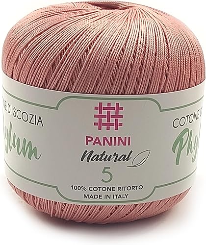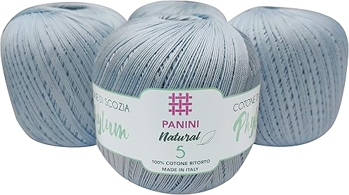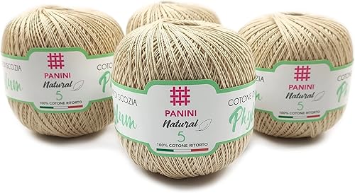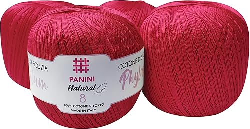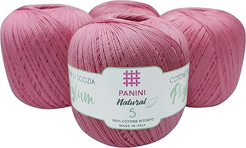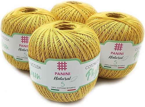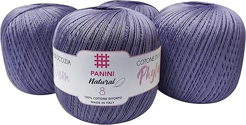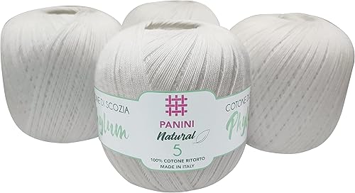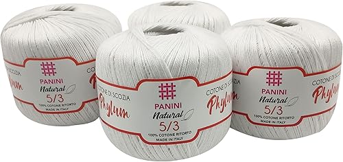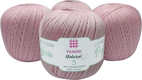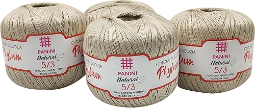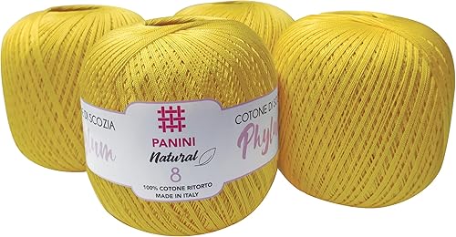 Panini Tessuti, 4 Pelotes de Cotton Phylum - Fil de Coton à Crocheter, Épaisseur 5 - Fil d’Écosse - Disponibles en Différentes Couleurs - 4 x 100 g - 450 m