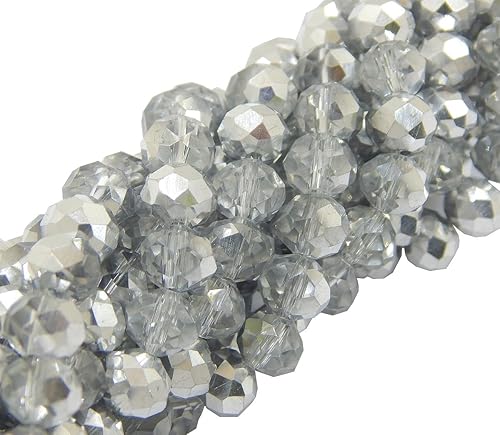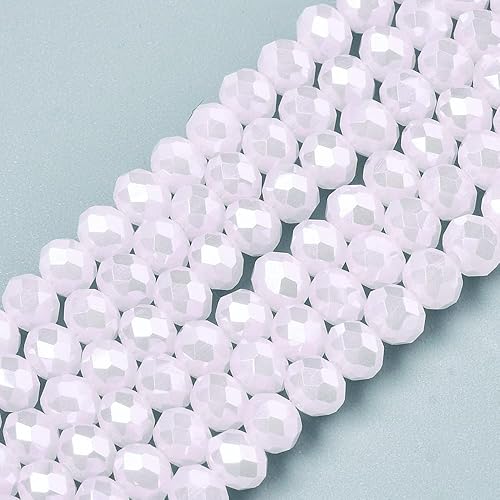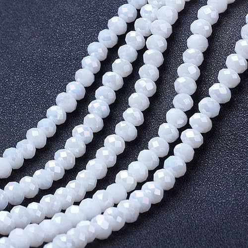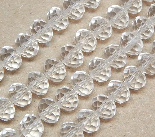 Lot de 65 perles en cristal tchèque, de Bohême, rondes, à facettes, 8 x 6 mm, en verre CZ, blanches