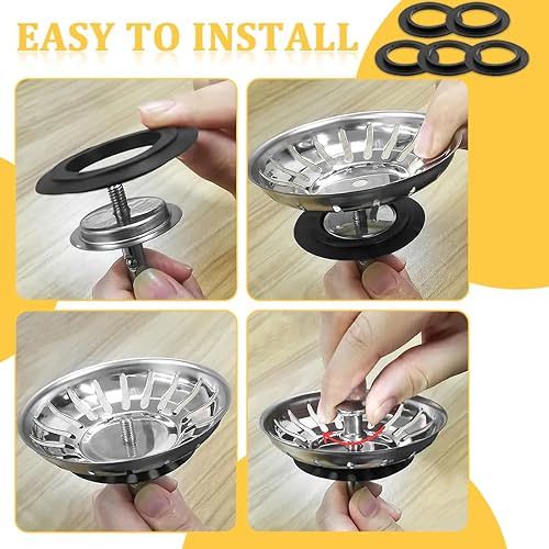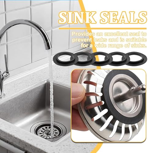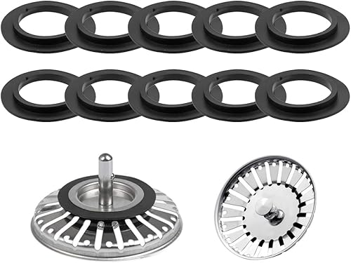 UEIOAVL Bouchons pour baignoire, 10 pièces joints d'évier de cuisine crépine panier évier joint couvercle en caoutchouc joints de remplacement pour salle de bain évier panier crépine (noir)