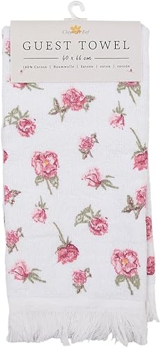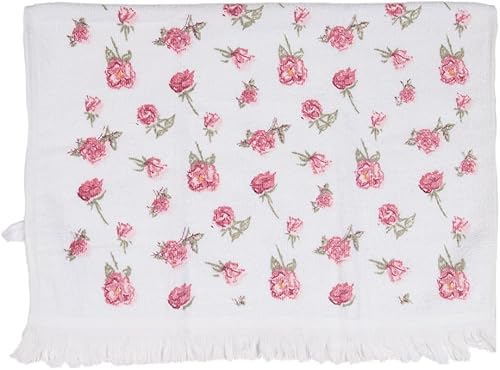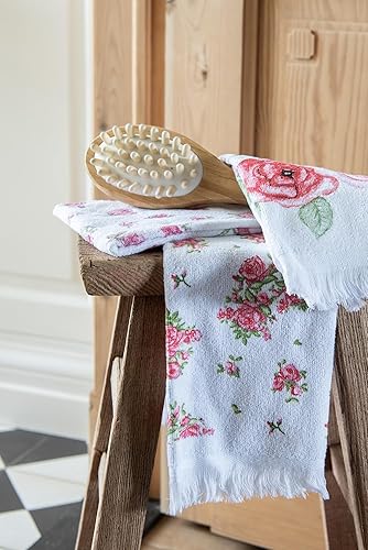 Clayre & Eef Serviette invité 40x66 cm Blanc Rose Coton Rose Toilettes Serviette