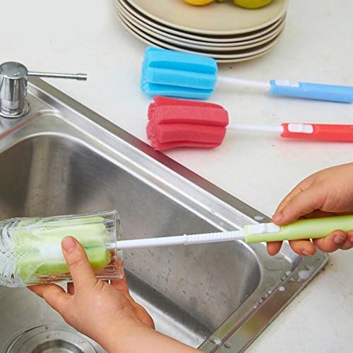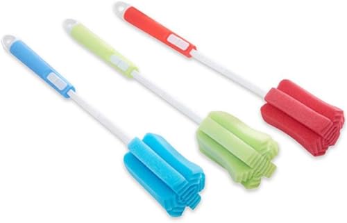 3PCS Réglable Éponge Bouteille Brosse De Nettoyage avec Longue Poignée En Plastique Tasse Brosse Laveur Brosse De Lavage pour Verre Decanter Alimentation-Bouteille Winebottle (Couleur Aléatoire)