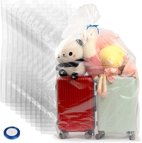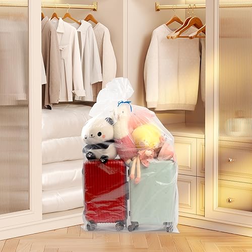 Lot de 10 sacs de rangement extra larges en plastique transparent - 100 x 152 cm - Sacs de rangement géants réutilisables pour bagages, grands animaux en peluche, vêtements