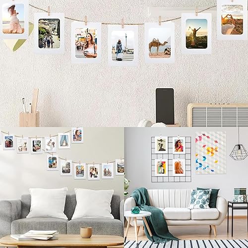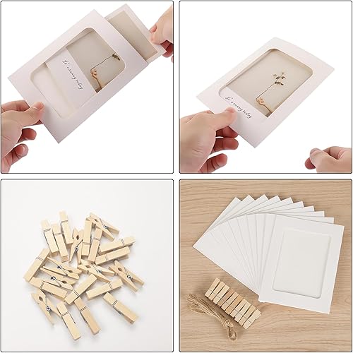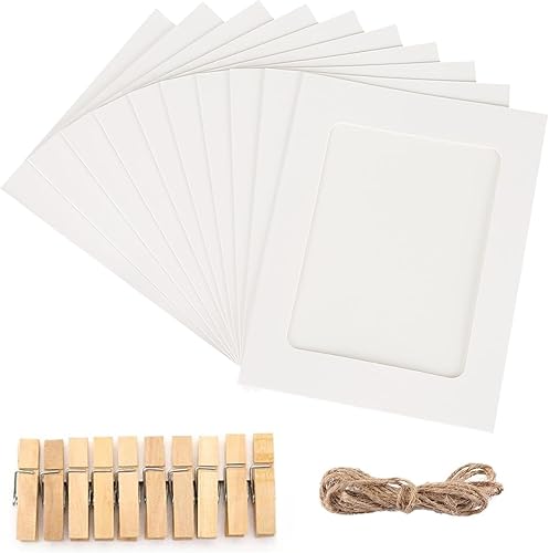 JCUGSBS Cadre Photo en Papier, 11.5 x 15.5CM DIY Cadre Photo Carton, 20 Pièces Blanc Cadre en Carton pour Photo avec 20 Clips et Cordes, pour Décoration Murale
