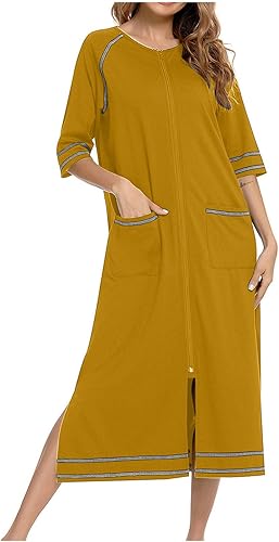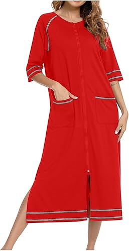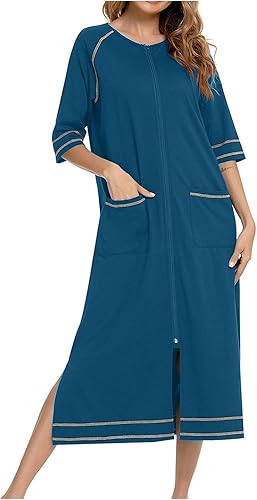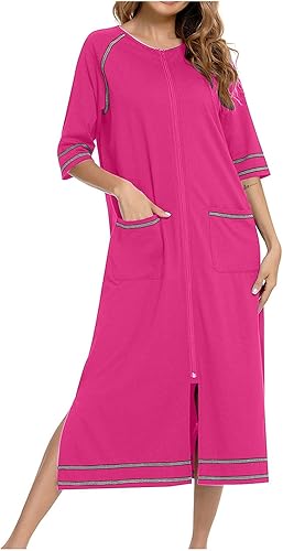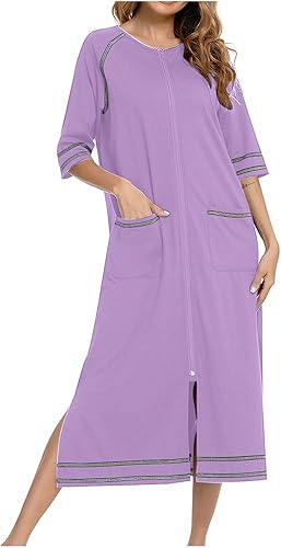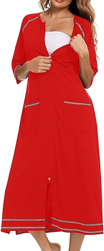 Robe de chambre d'été en coton pour femme - Robe de chambre fine à manches longues - Robe de chambre d'été décontractée et ample - Avec fermeture éclair - Solide