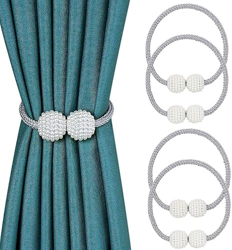 N-B Paquet de 4 Embrasses à Rideaux Magnétiques, Attaches de Rideau, Boucles pour Rideaux, Accessoires pour Rideaux et Stores, pour la Maison Bureau Restaurant Décoration (Girs)