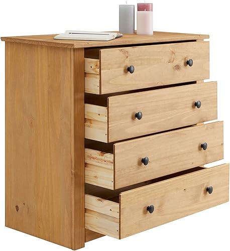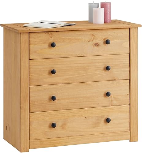 IDIMEX Commode Cancun Buffet avec 4 Grands tiroirs, en pin Massif à la Finition teintée et cirée