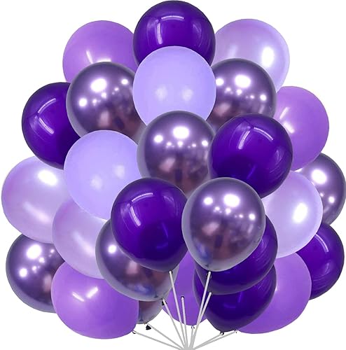 Lot de 60 ballons violets métallisés de 30,5 cm - En latex violet clair - Pour anniversaire, fille, femme, mariage, remise de diplôme, fête prénatale