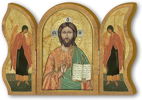 Frères Bonella - Triptyque en bois avec l'icône Jésus Maître - 6 x 9 cm - Fabriqué en Italie