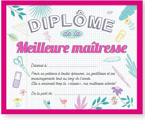 Les Trésors De Lily [R2631 - Cadre 'Diplôme de la Meilleure Maîtresse' Rose - 25x20x1.5 cm