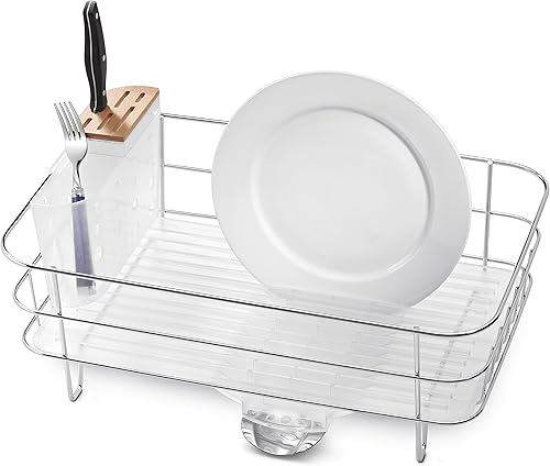 simplehuman KT1104 égouttoir à vaisselle compact pour cuisine, plastique blanc