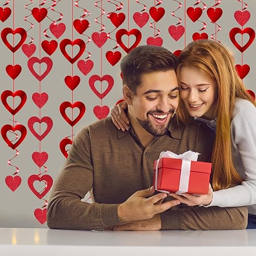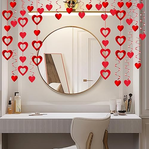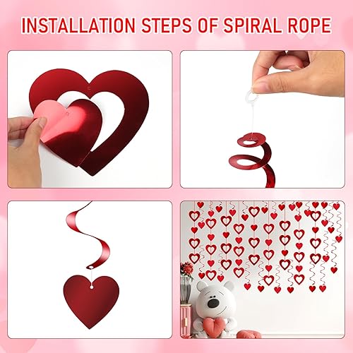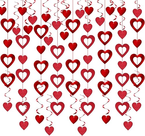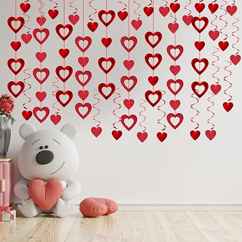 Detene 80 Pièces Rouge Coeur Guirlande Suspensions Décoration Décoration de Tourbillon pour Saint Valentin Rouge Saint Valentin Deco pour Saint Valentin Anniversaire Mariage Décorations de Fête