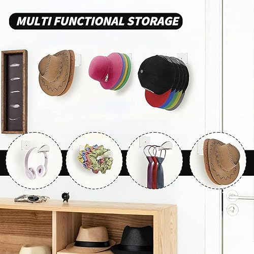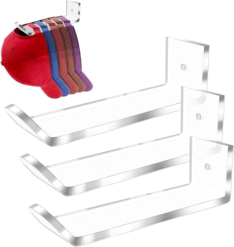 Porte Casquette,Range Casquette,Porte Casquette Mural,Acrylique Support Casquette,Rangement Casquette Pour Sacs à Chapeaux Clés écharpes Cravates,Support Casquette Mural Transparent(3 Pièces)