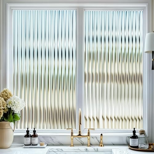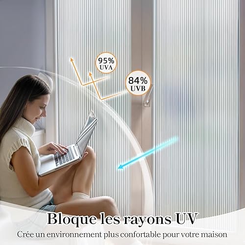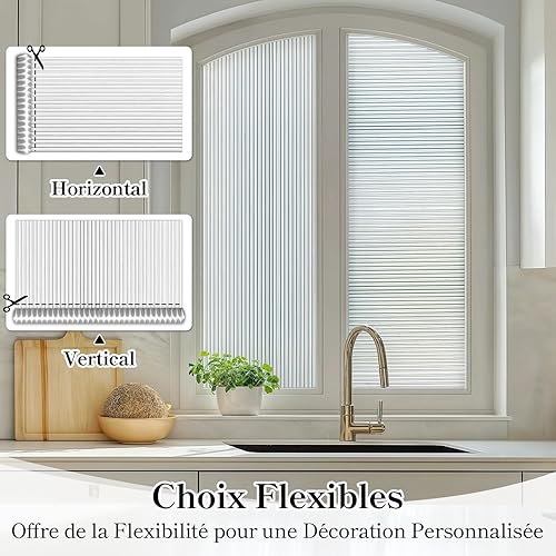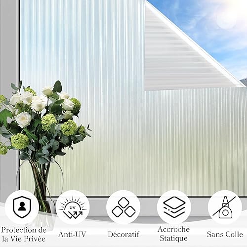 DARUITE Film Fenetre Anti Regard, Film Electrostatique Vitre à Rayures, sans Colle et Anti-UV, Brise Vue Fenetre Décoratif, Idéal pour Chambre, Salon, Bureau ou Cuisine (90x200 cm)