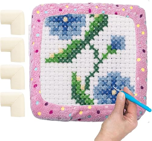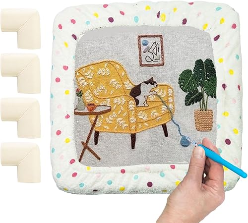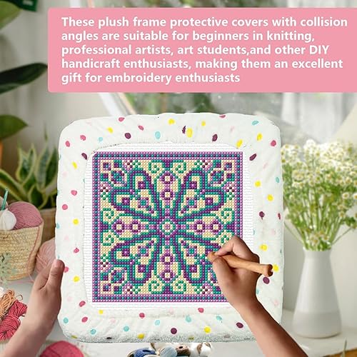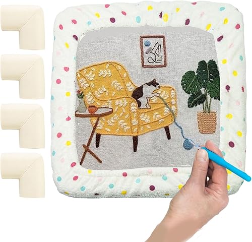 Housse de cadre en tufting - Housse en flanelle pour cadre de préhension de l'aiguille à broder - Couverture de cadre de broderie avec 4 coins anti-collision en mousse