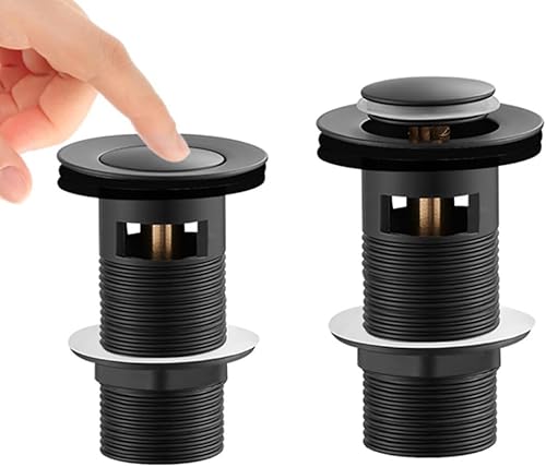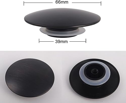 Bouchon de vidange pour lavabo, 66 mm, noir mat, bouchon de vidange pour lavabo de salle de bain, pièce de rechange pour la plupart des lavabos de cuisine ou de salle de bain