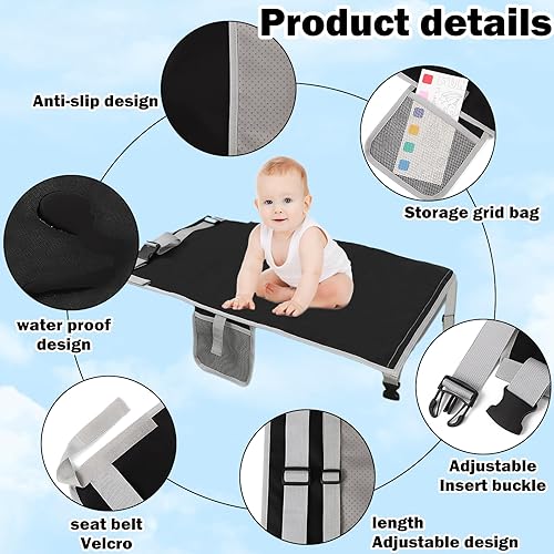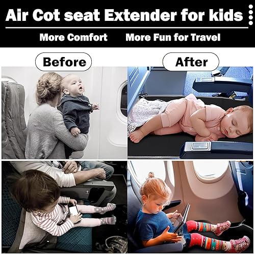 Lit Avion Enfant Rallonge de SièGe D'avion Repose Pied Avion Accessoires de Voyage Convient aux Enfants aux Tout-Petits et aux Bébés Essentiels de Voyage en Avion (Noir)