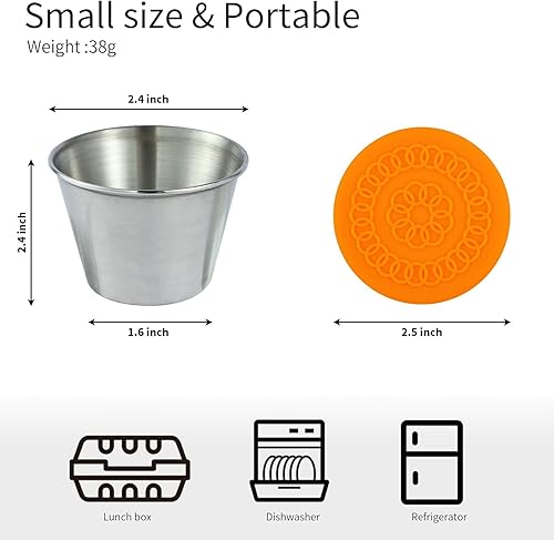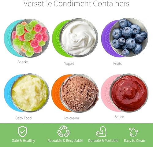 MLRYH 6Pcs Récipient Vinaigrette avec Couvercles en Silicone, 70ml Petit Récipient à Sauce en Acier Inoxydable, Boîte Alimentaire Dressing to Go Anti-fuite,Réutilisables,Sans BPA,Multicolore.