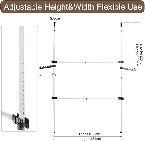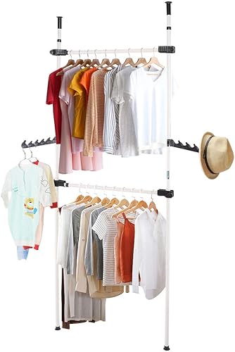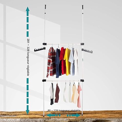 Cerlingwee Porte-manteau de vêtement, durable Heithe largeur réglable 2 barres cintre ABS penderie télescopique pour ménage pour chambre à coucher