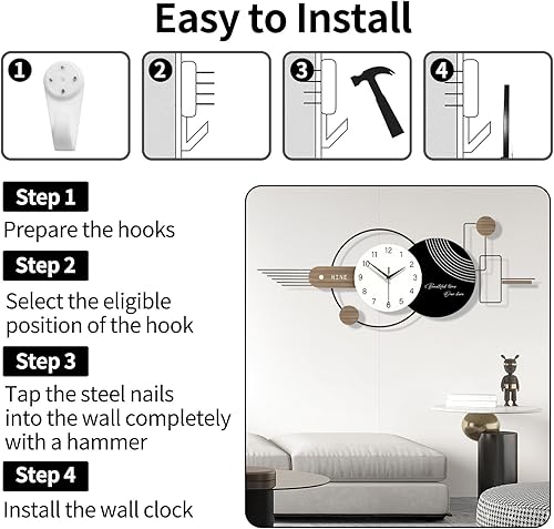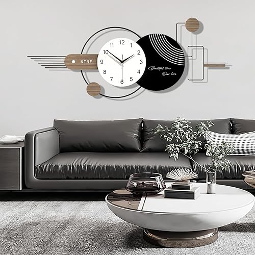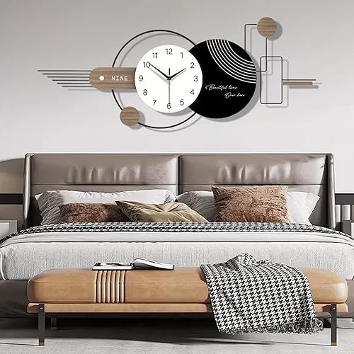 Grande Horloge Murale Moderne, Minimaliste Créative de Style Horloge Murale Decoration, Silencieuse Quartz Horloge Murale XXL, pour Salon Chambre Bureau, 40 * 100 cm (Gris et Blanc)