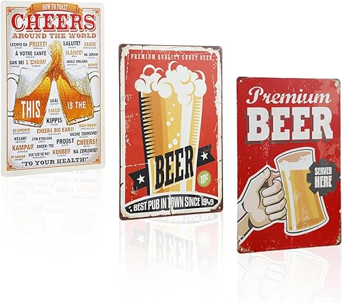 HMIEPRS 3 Pièces Bière Affiche Poster Plaque en Métal Vintage Décoration Murale, Peinture D'étain en Métal Retro de Bière pour Décoration de Café Bar Pub Restaurant Accueil Bière