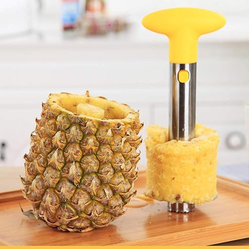 CHENs Coupeur d'ananas, carottier et trancheur d'ananas en Acier Inoxydable, Outil de dépose de Noyau de Fruit, Facile à Nettoyer (Yellow)