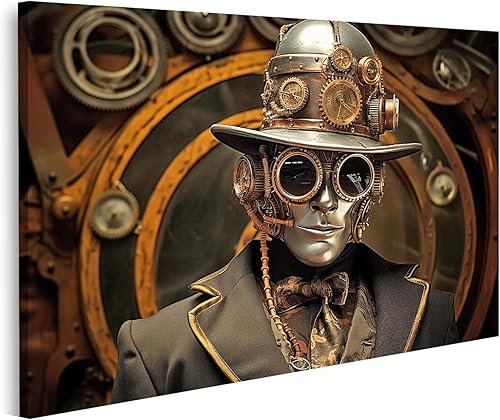 islandburner Tableau sur toile robot steampunk personnage fictif porte un chapeau vintage élégant costume images murales poster
