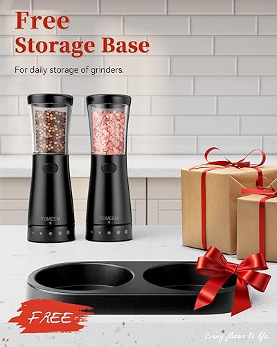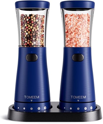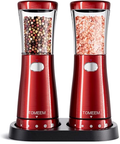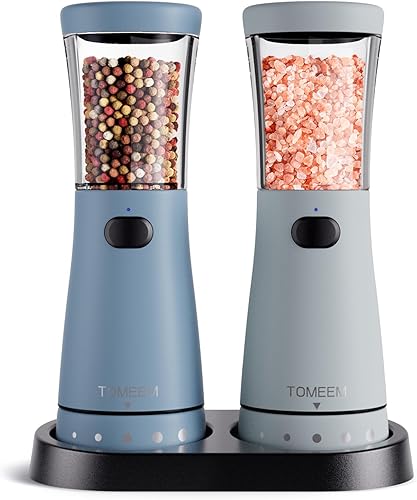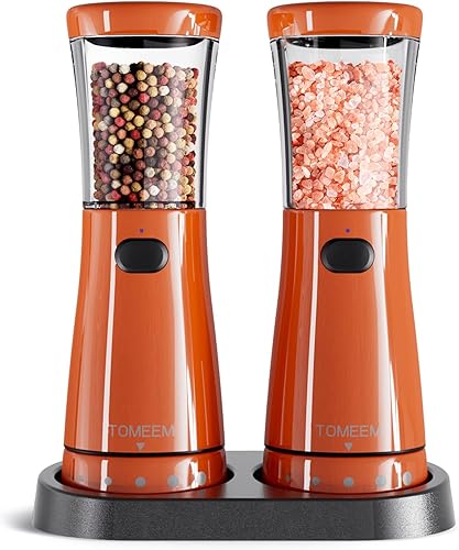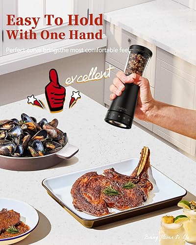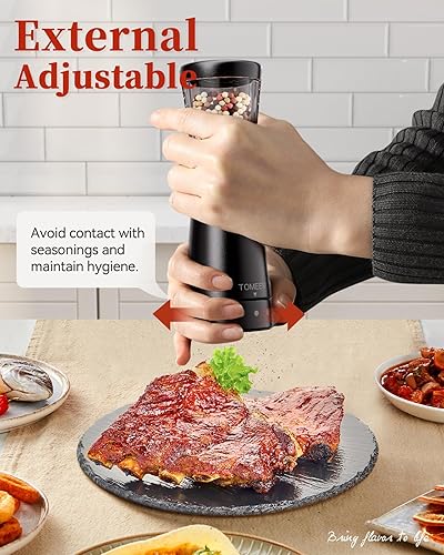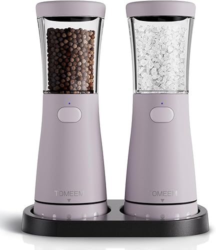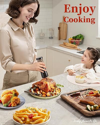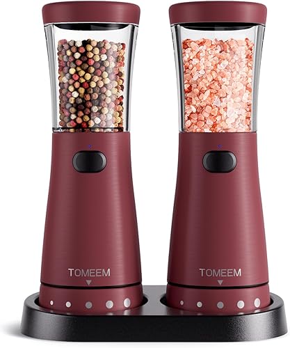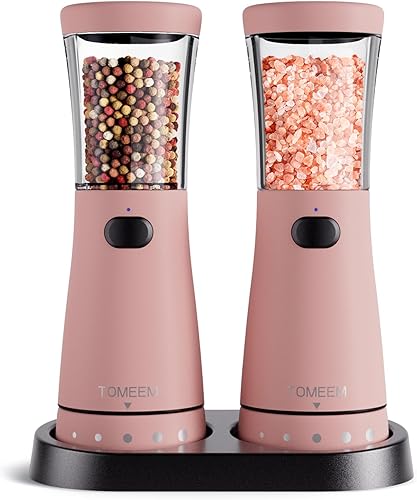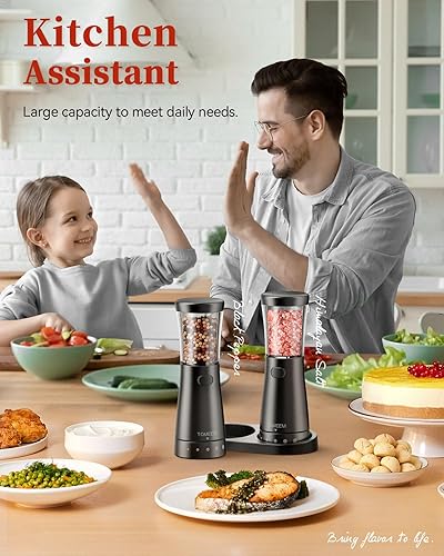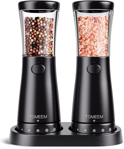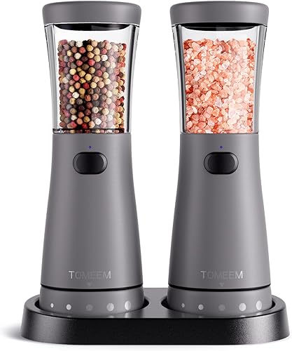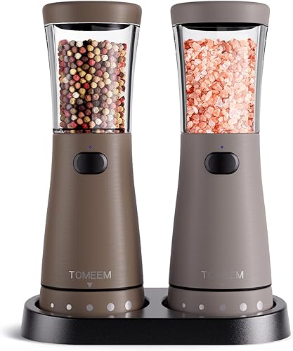 Lot de 2 moulins à sel et poivre électriques en acier inoxydable (rechargeables, éclairage LED, avec broyeur en céramique réglable, brosse de nettoyage) Moulin à épices électrique réglable Bois